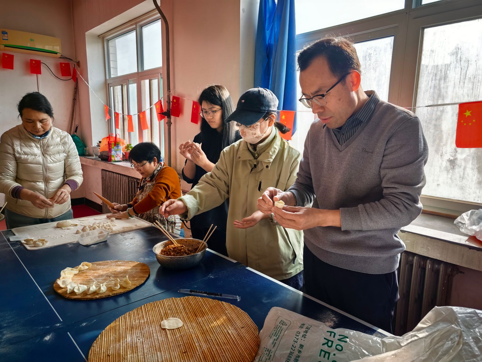 冬至寒意浓,校园暖情融。为传承中华优秀传统文化,让学生沉浸式感受冬至节气的独特韵味,12月18日,子弟学校组织六年级师生开展“饺香飘校园 温情过冬至”包饺子活动。后勤服务中心党委书记龚俊朋,主任王吉田、副主任张建设等参加活动,与师生共迎冬至。