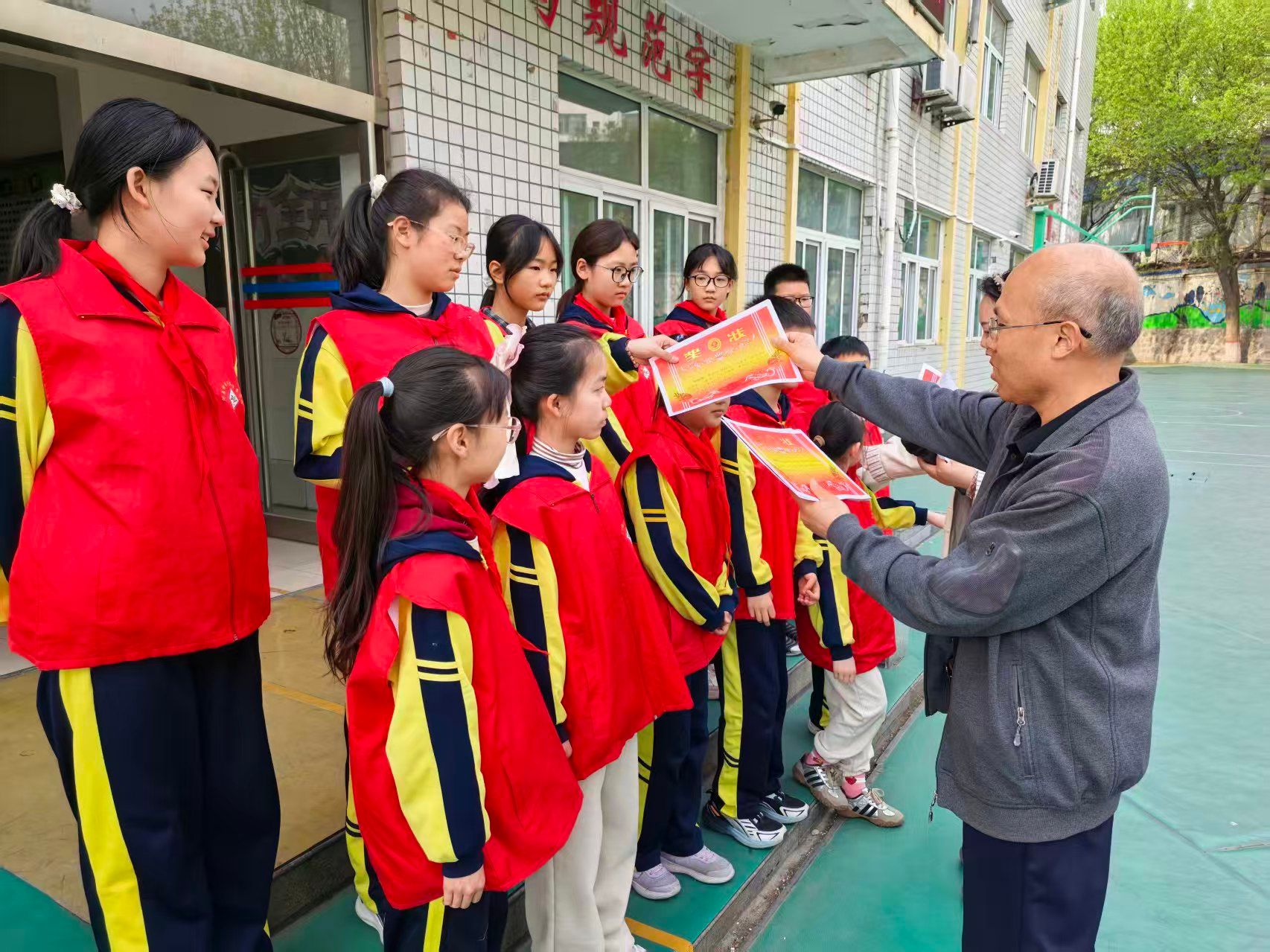 颁奖环节将现场气氛推向高潮。“学雷锋小标兵”“优秀小志愿者”获得者依次上台领奖。副校长李广州作总结讲话。他表示,学校将持续通过表彰激励,引导同学们将雷锋精神融入学习生活,勉励大家将雷锋精神内化于心、外化于行,从身边小事、点滴善举做起,用实际行动书写新时代少年的“雷锋日记”。
