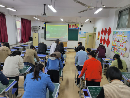 3月31日下午,子弟学校全体教师在三二班教室进行两笔字(钢笔字、粉笔字)比赛。后勤服务中心主任王吉田、副主任魏军鹏到比赛现场观摩。